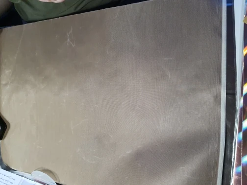 Хороший прочный материал, который хорошо работает и относительно легко чистится. Очень разочарован тем, что он был сложен так сильно, что не ложится на поднос/решетку. Я хотел бы иметь возможность заплатить немного больше и разместить его в рулоне.