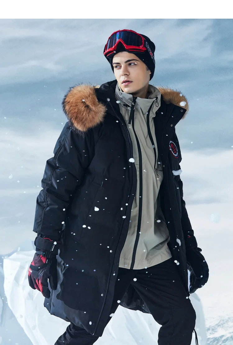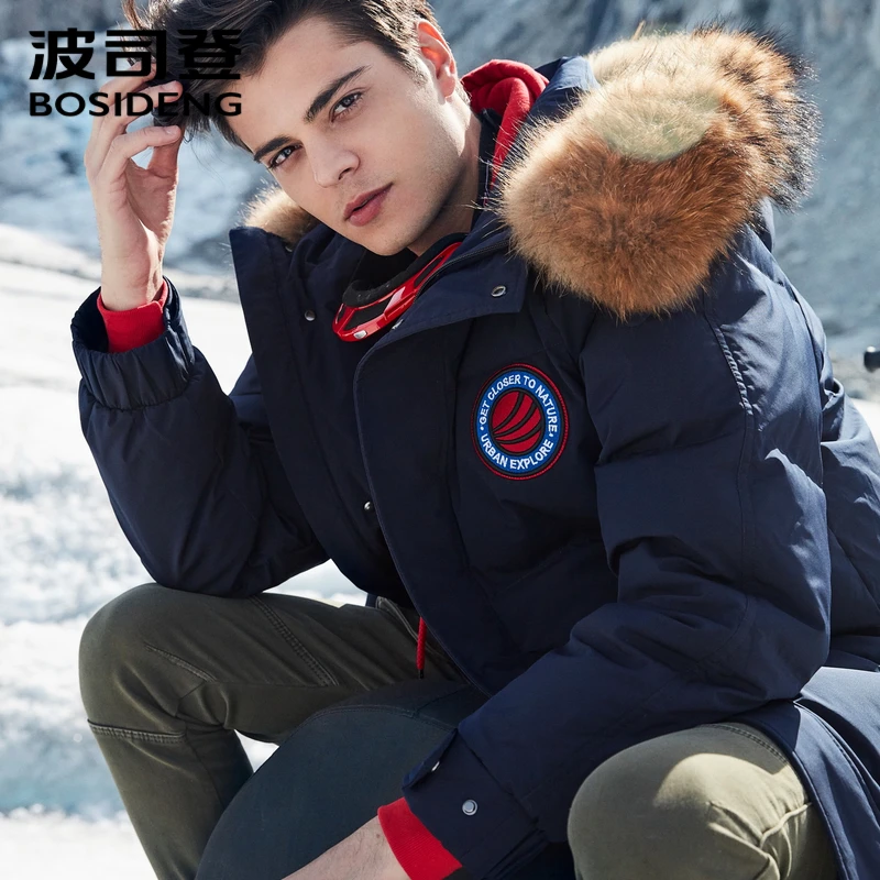 BOSIDENG жесткая зимняя утепленная гусиная пуховая куртка для мужчин пуховик из натурального меха водонепроницаемая ветрозащитная верхняя одежда с капюшоном B80142149