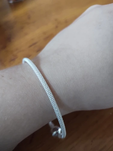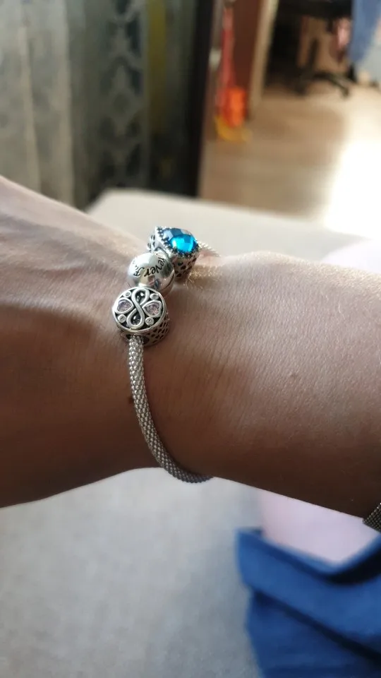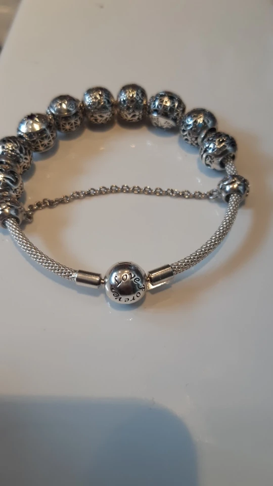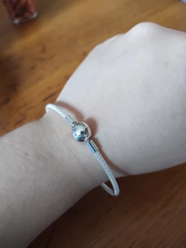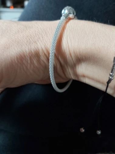 Действительно красивый браслет, кажется настоящим серебром. Идеальный размер, Просто наденьте несколько дополнительных бусин. Мне нравится и обязательно буду покупать больше, возможно, в другом стиле. Быстрая доставка. Рекомендуется!