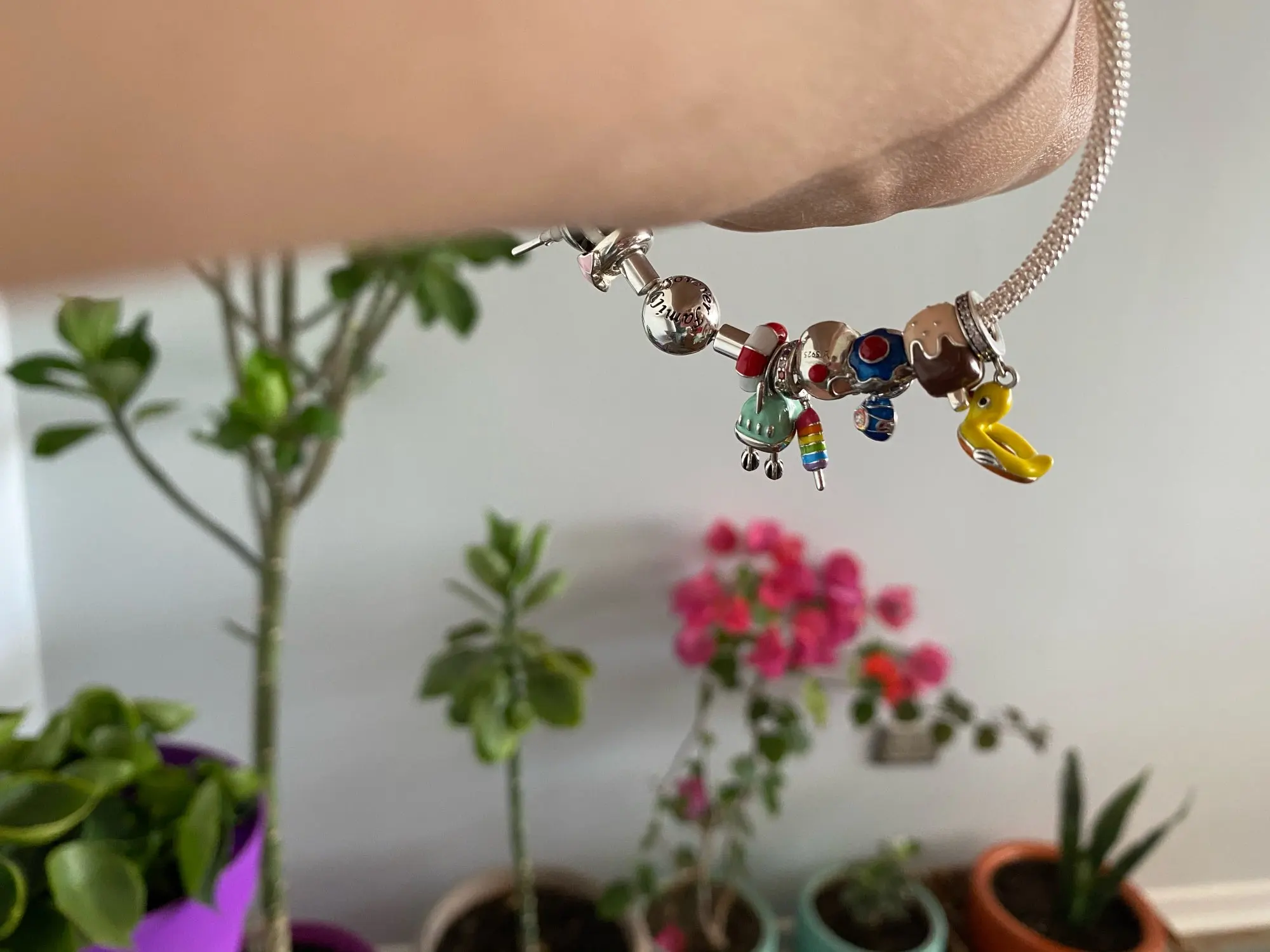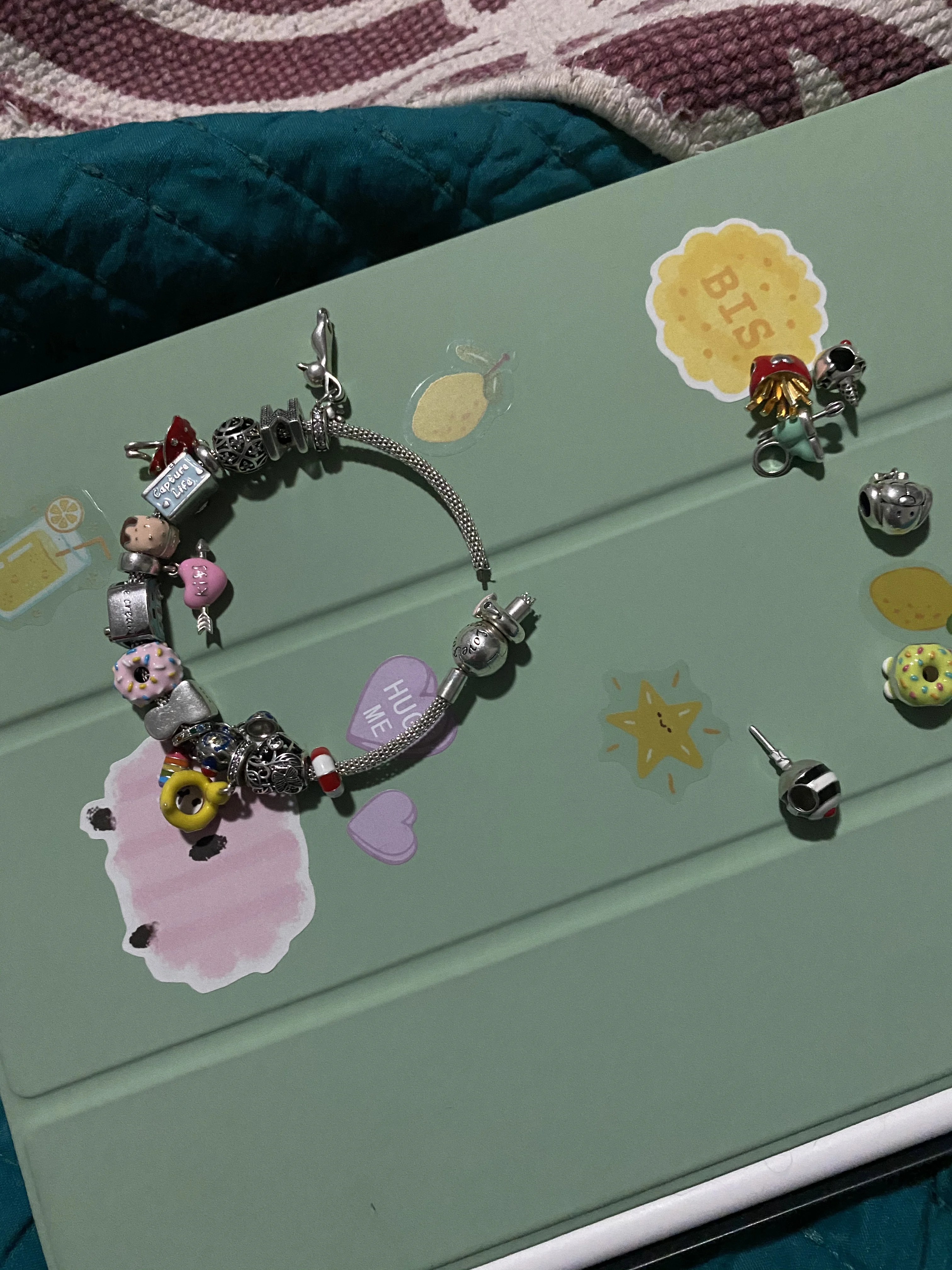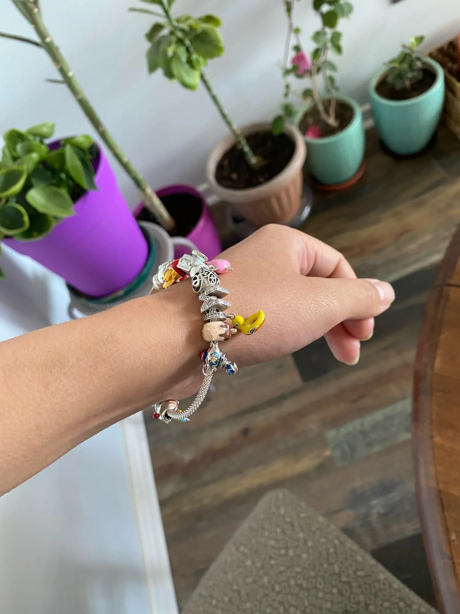 Браслет с уважением относится ко всем функциям. Очень красиво. Я сделал больше, чем измерение окружности запястья, чтобы вы могли поставить больше шармов. Немного жесткая застежка
