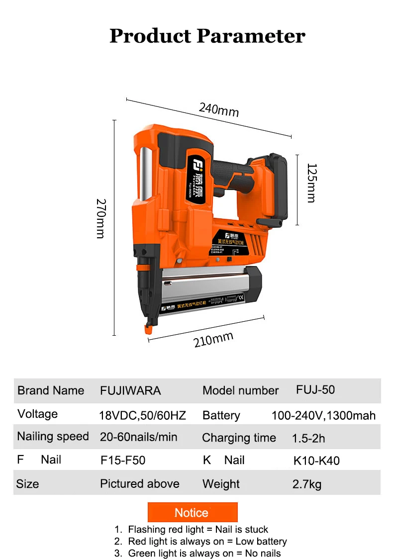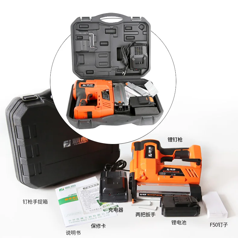 Электрический гвоздезабивной пистолет FUJIWARA, с перезаряжаемой литиевой батареей, 15-50 мм, прямые гвозди 10-40 мм, U-образный инструмент для обработки гвоздей