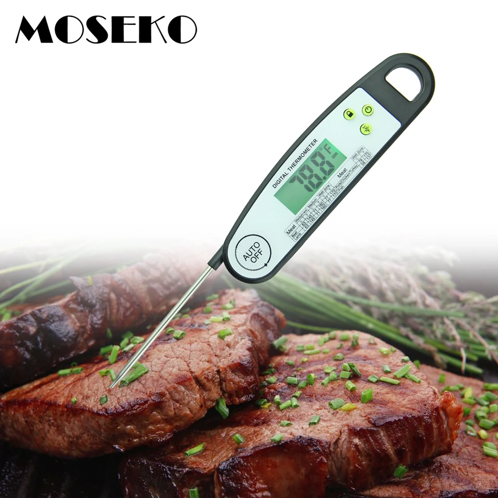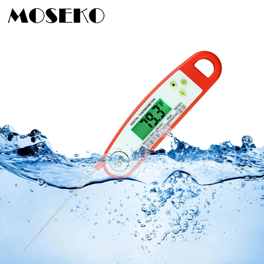 Термометр MOSEKO IPX4 складной, цифровой термометр для мгновенного приготовления пищи и мяса, с 4-дюймовым щупом из нержавеющей стали