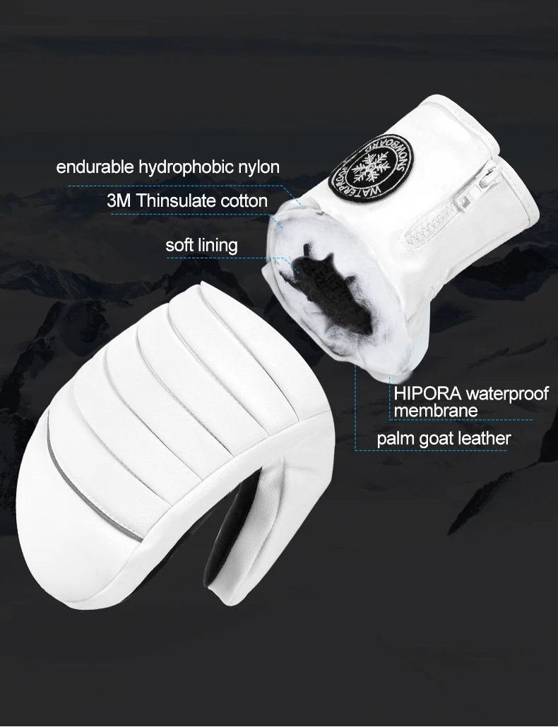 Теплые лыжные перчатки kutake, зимние, из козьей кожи, водонепроницаемые, для сноуборда, снегохода, для мужчин и женщин