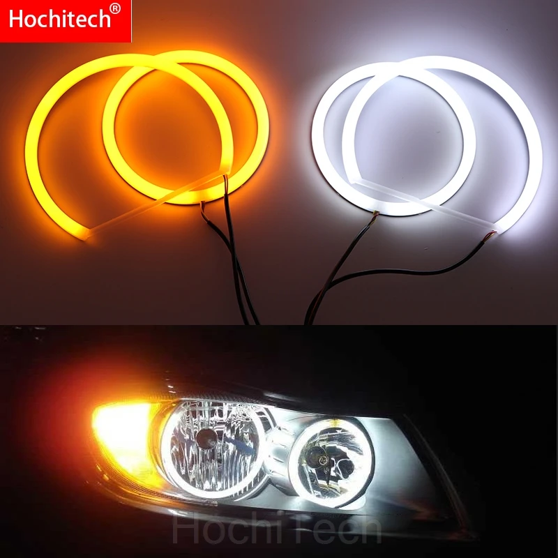 Для BMW 3 серии E90 05 '-08 галогенные лампы головного светильник белый и желтый двойной цвет хлопок комплект светодиодов глаза ангела halo Кольцо DRL сигнал поворота светильник