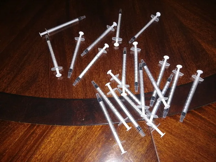 Поскольку у моей морской свинки есть несколько проблем со здоровьем, мы должны накормить его шприцом. Он хочет только шприцы объемом 1 мл, поэтому очень рад, что нашли их здесь на AliExpress! Эти шприцы не имеют иглы, именно то, что я хотел. Его «критическая Забота» еда довольно толстая, поэтому мы должны отрезать кончик. Иглы не упакованы индивидуально, но это не обязательно для нас. Я включает несколько фотографий шприцев и упаковки. Я заказал два комплекта, поэтому две сумки Ziploc. Закажем снова в ближайшее время!