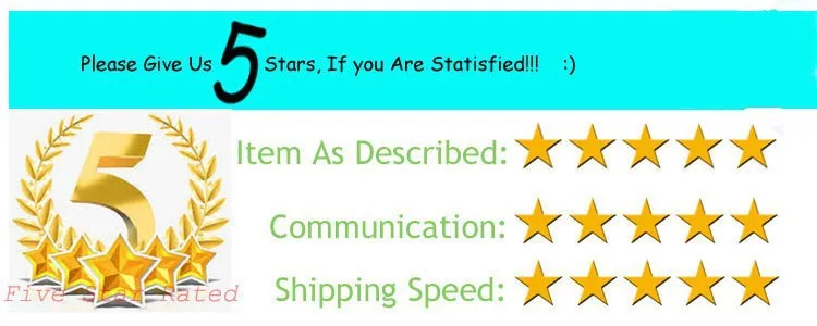 Ваше удовлетворение и положительные отзывы очень важны для нас. Пожалуйста, оставьте положительный отзывы в и 5 звезд. Если у вас возникли проблемы с нашими товарами или услугами, пожалуйста, свяжитесь с нами, прежде чем оставить отрицательный отзывы в. Мы понимаем Несчастье, которое может возникнуть в случае неправильного заказа, так как мы думаем, что любые проблемы будут решены после активного сотрудничества и хорошего общения. Мы сделаем все возможное, чтобы решить любые проблемы и предоставить Вам лучшее обслуживание клиентов. Спасибо!