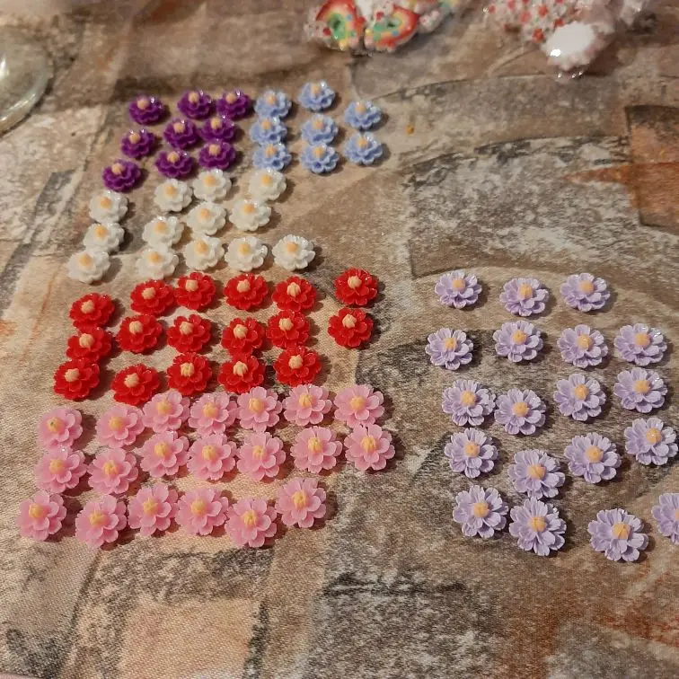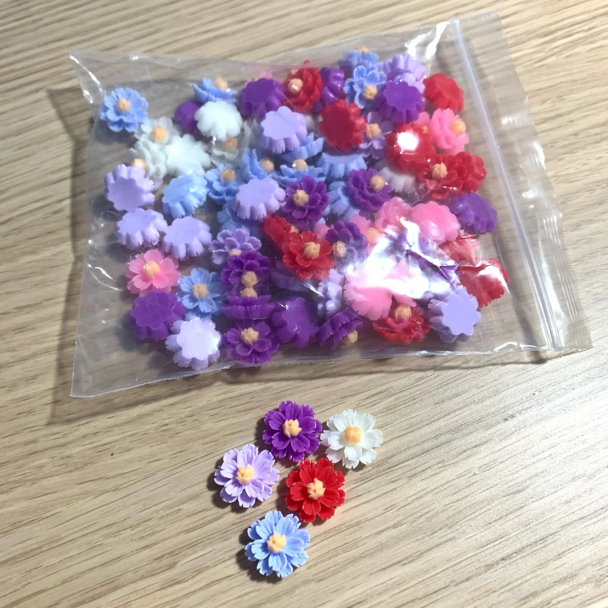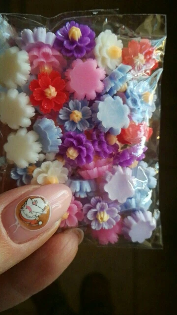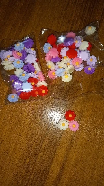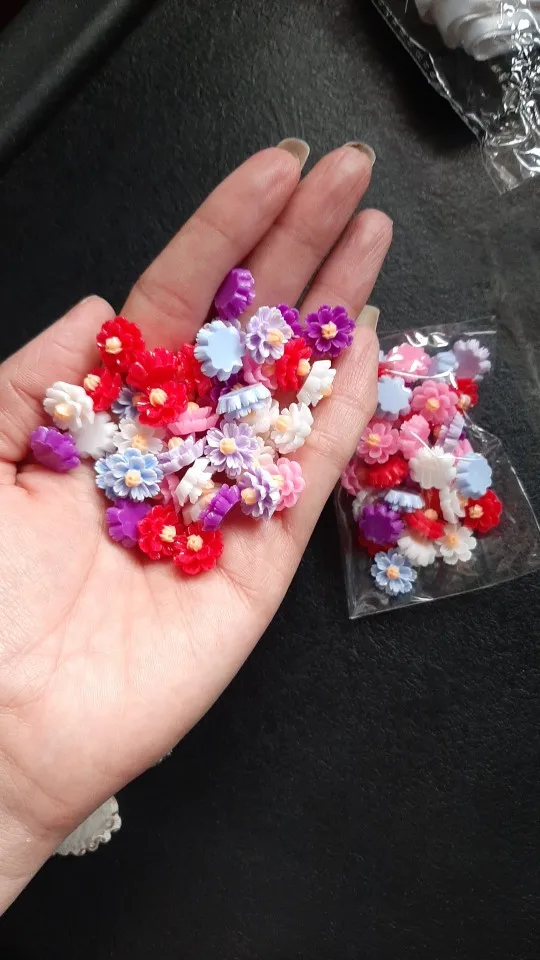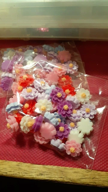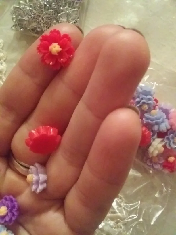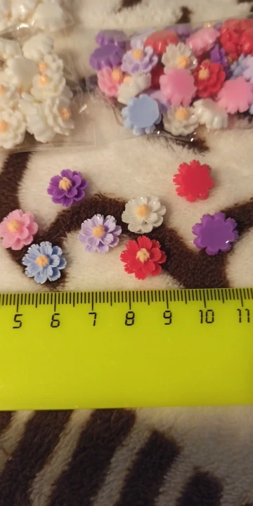 очень красивые четкие цветочки из цветной смолы,смотрятся как стеклянные.Рекомендую!