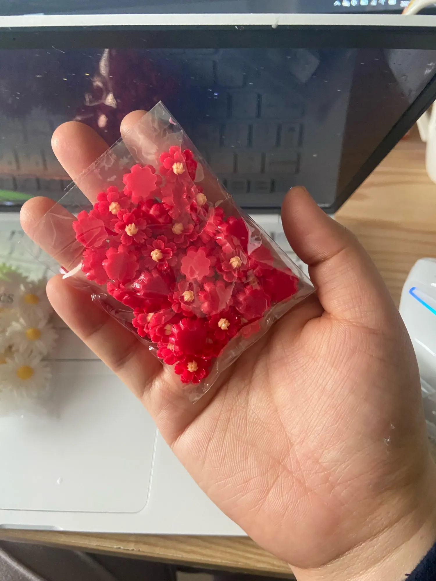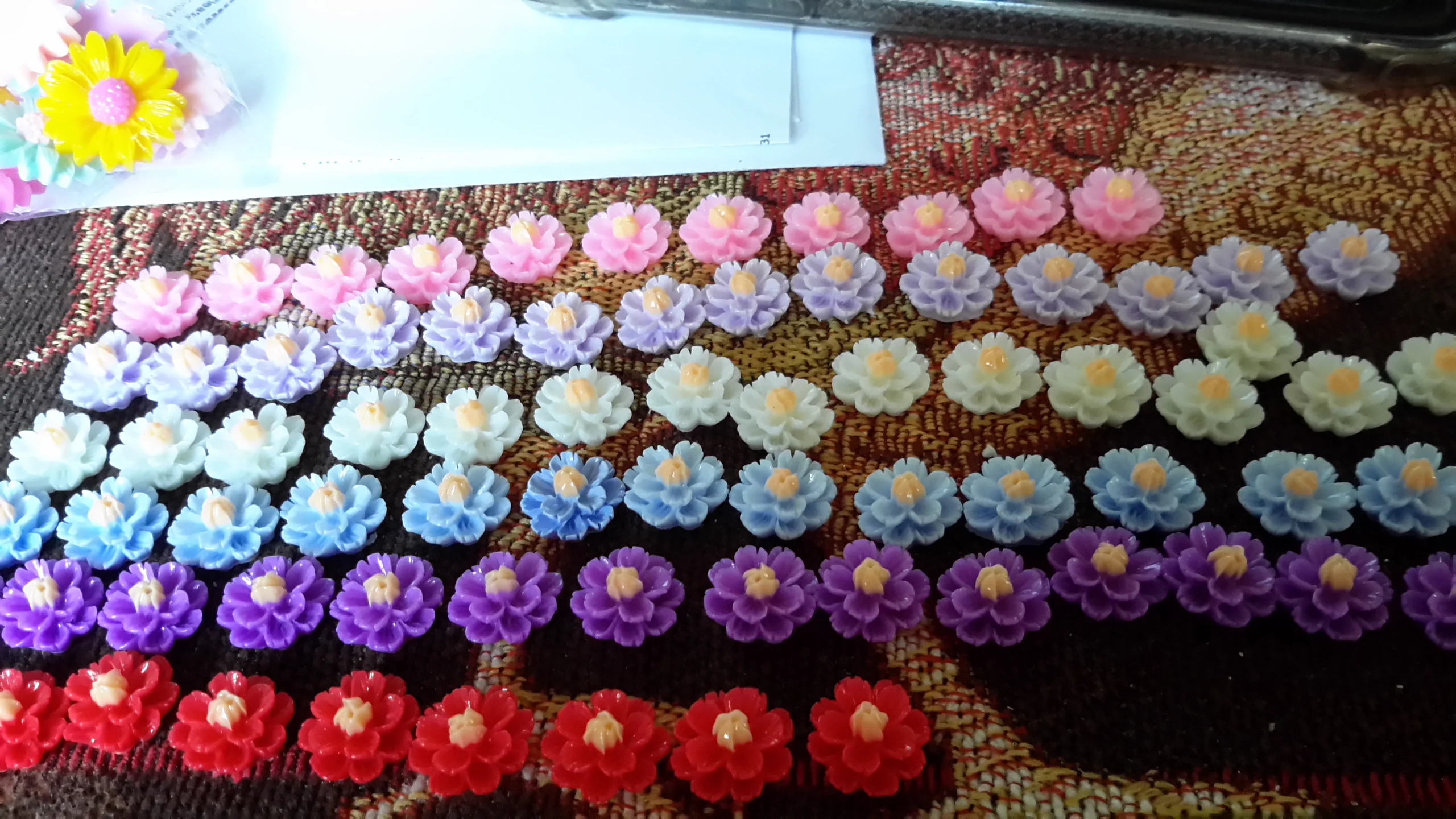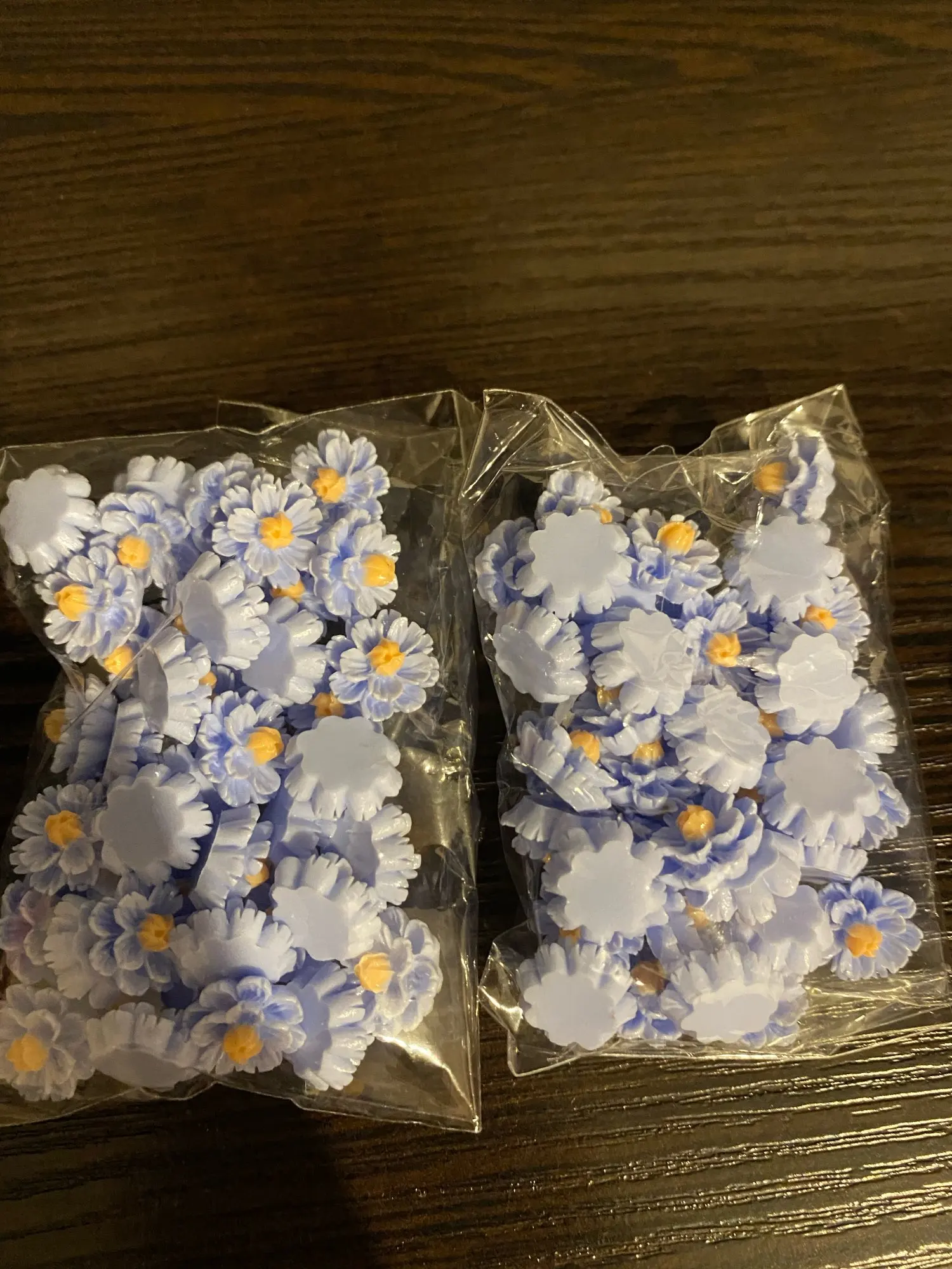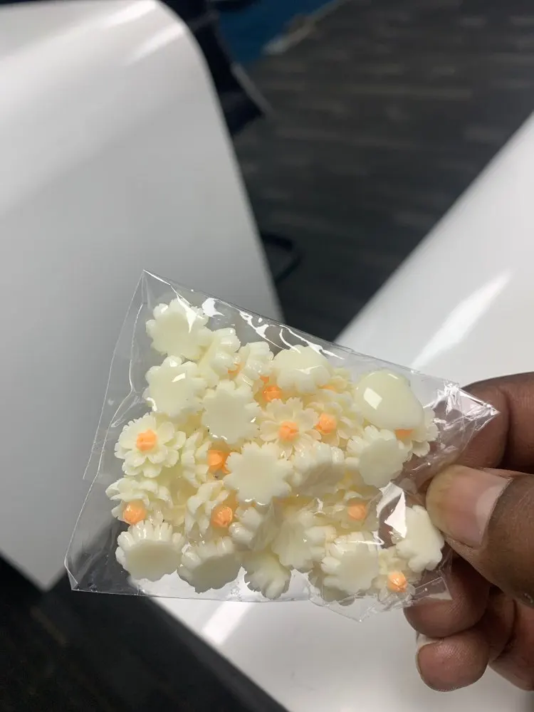 очень красивые четкие цветочки из цветной смолы,смотрятся как стеклянные.Рекомендую!