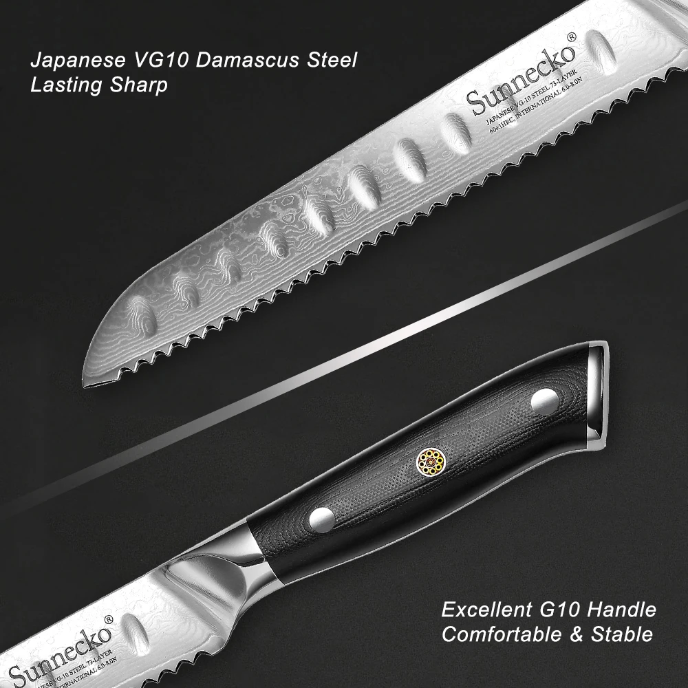 Нож шеф-повара SUNNECKO VG10, японская бритва из дамасской стали, острый нож для разрезания тортов, 8 дюймов, Ручка G10