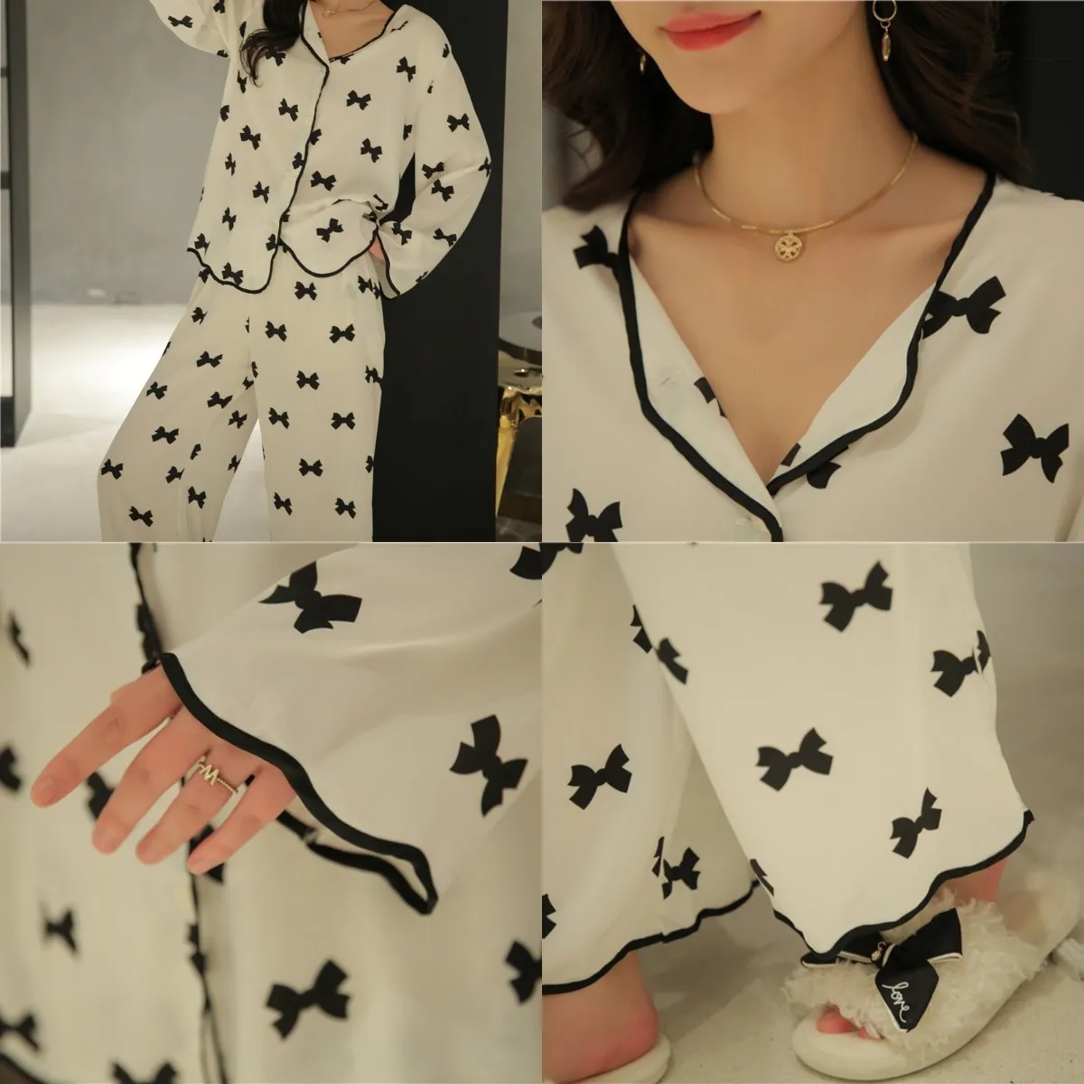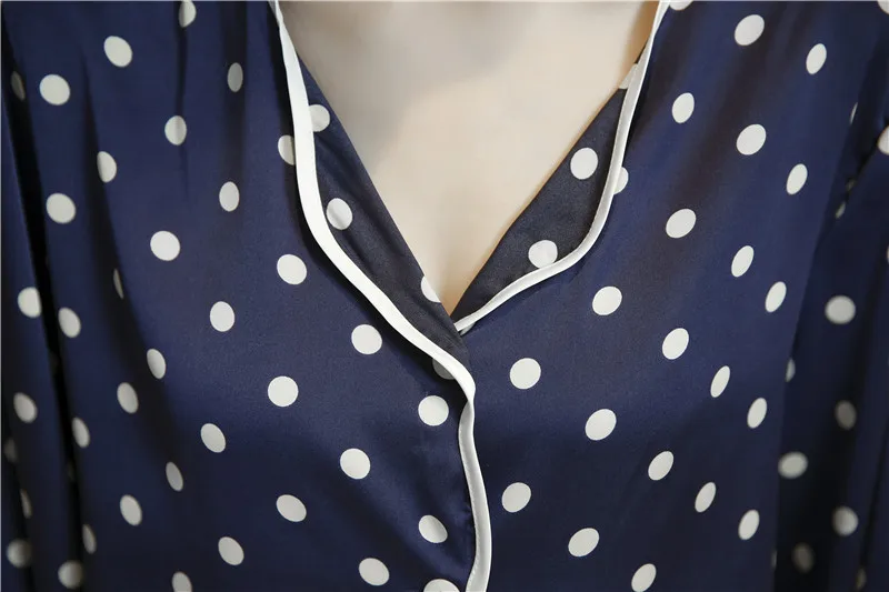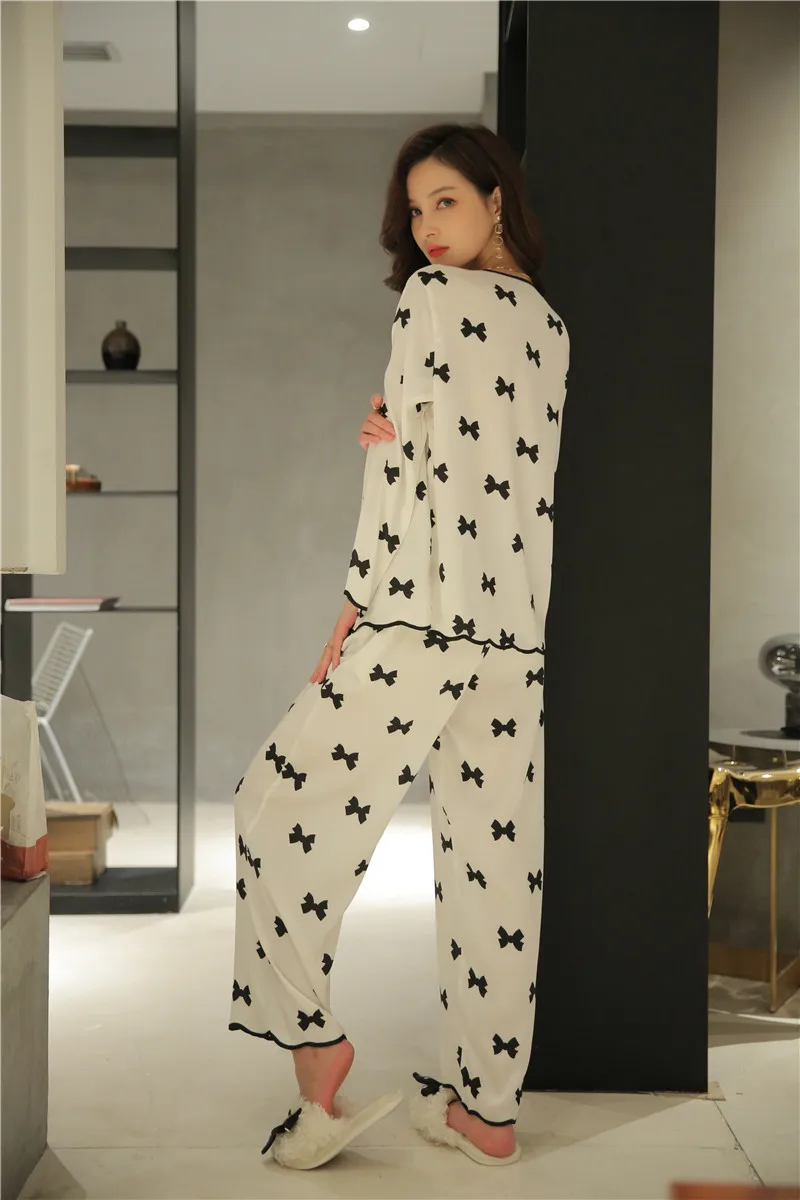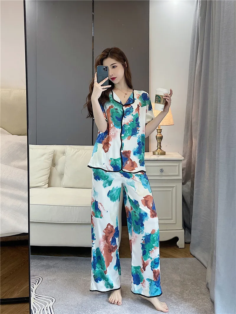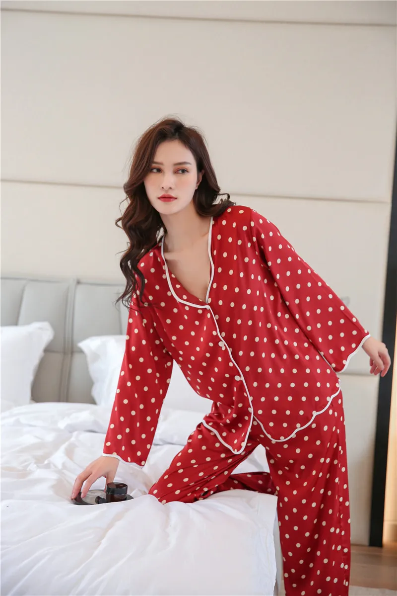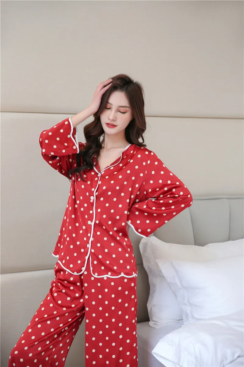 Пижама женская из искусственного шелка, с длинным рукавом и отворотами