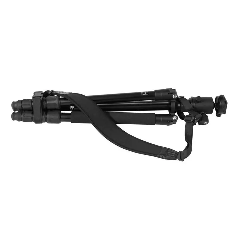 Плечевой ремень штатива специально разработан для переноски штатива. Ремешок имеет две петли: одна-обернуть вокруг ног и меньшую петлю, которая крепится к колонне в верхней части штатива. Изделие очень легко лежит на плече с толстой нескользящей прокладкой из неопрена, которая плотно фиксирует ремень, позволяя вашим рукам свободно обращаться с другим оборудованием или пересеченной местности. Он полностью регулируется от 64 см (25 дюймов) до 79 см (31 дюйм).