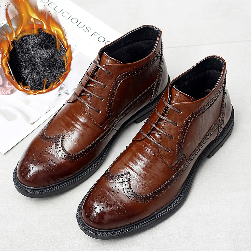 Мужские ботинки-оксфорды MVVT, из натуральной кожи, зимние деловые полуботинки