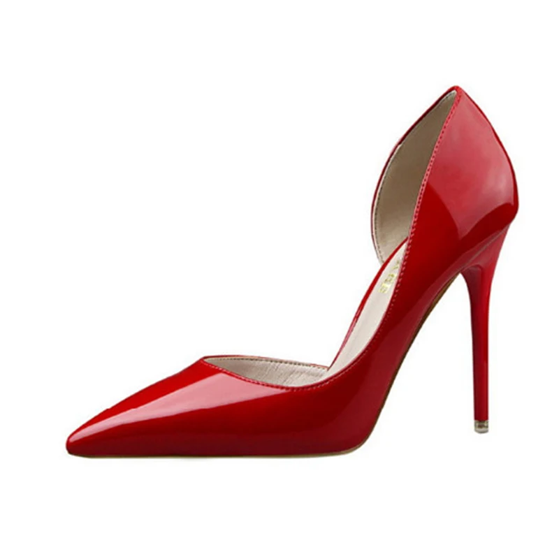 BIGTREE2018 г.; Женские туфли-лодочки из лакированной кожи; Пикантные туфли с вырезами и острым носком на высоком каблуке 10 см; Бесплатная доставка