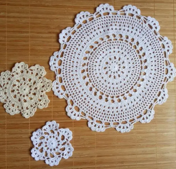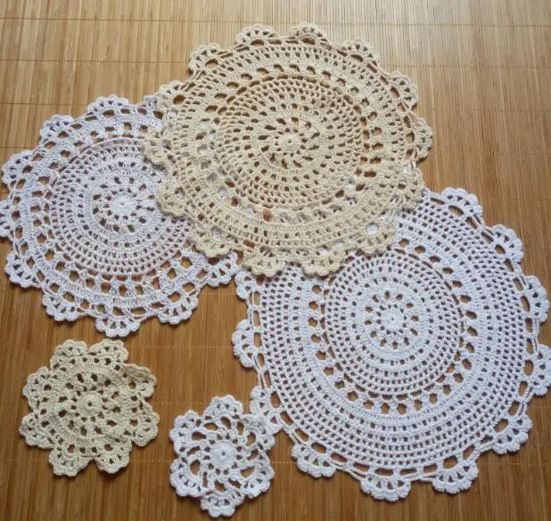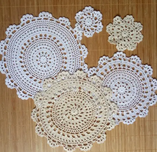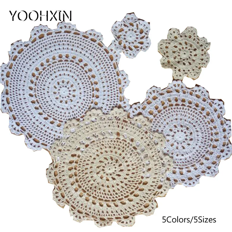 Кружевной коврик для стола из хлопка, 5 размеров, вязаные коврики для чая, кофе, круглая подставка для столовой, чашки, кружки, свадьбы, кухни