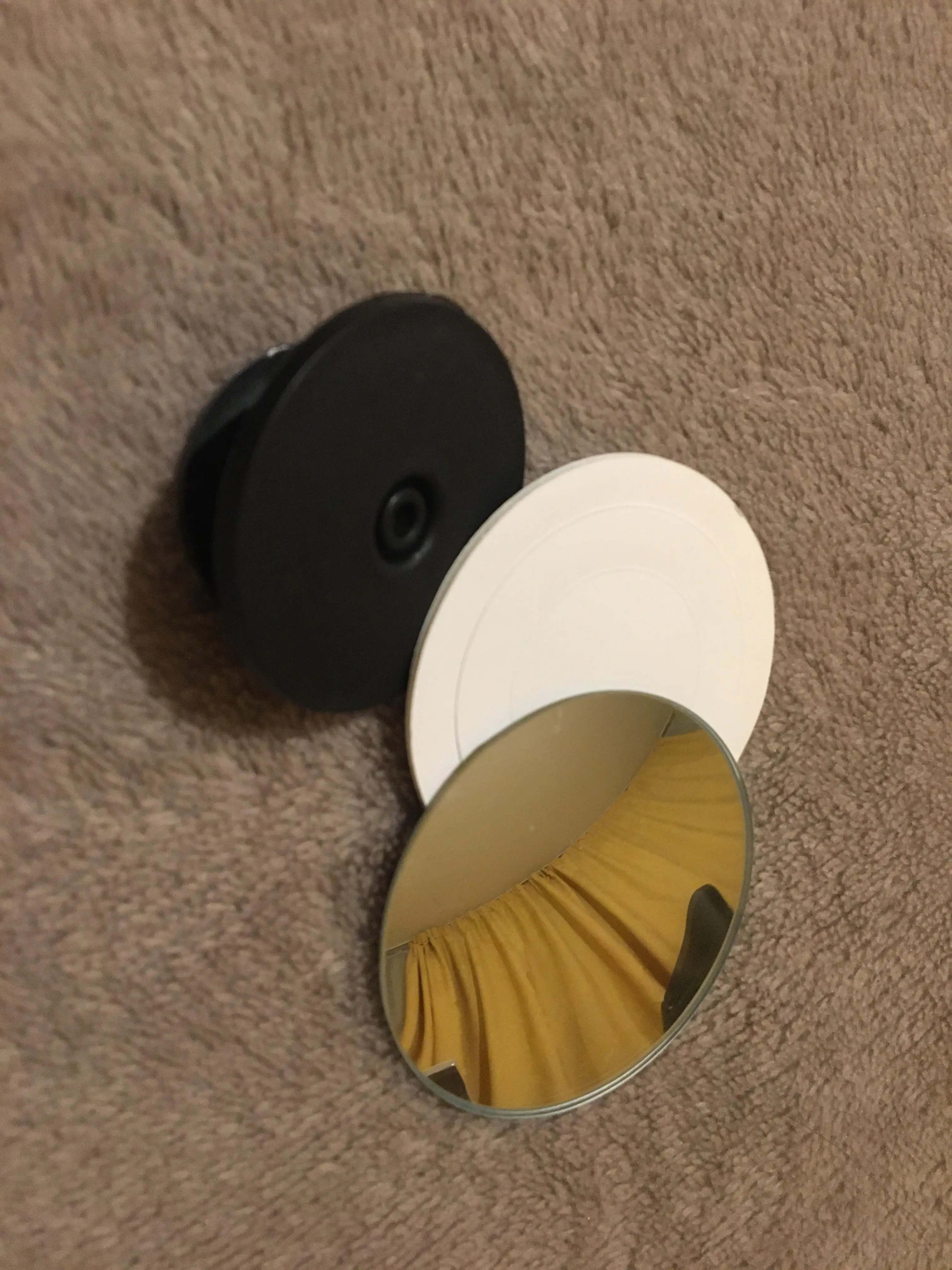 пришла достаточно быстро, в отличие от других товаров которые заказала раньше и до сих пор не пришли. есть держатель, липкий скотч и само зеркало. на свету просвечивает, но так вроде нормально. попробуем, как будет держаться на зеркалах