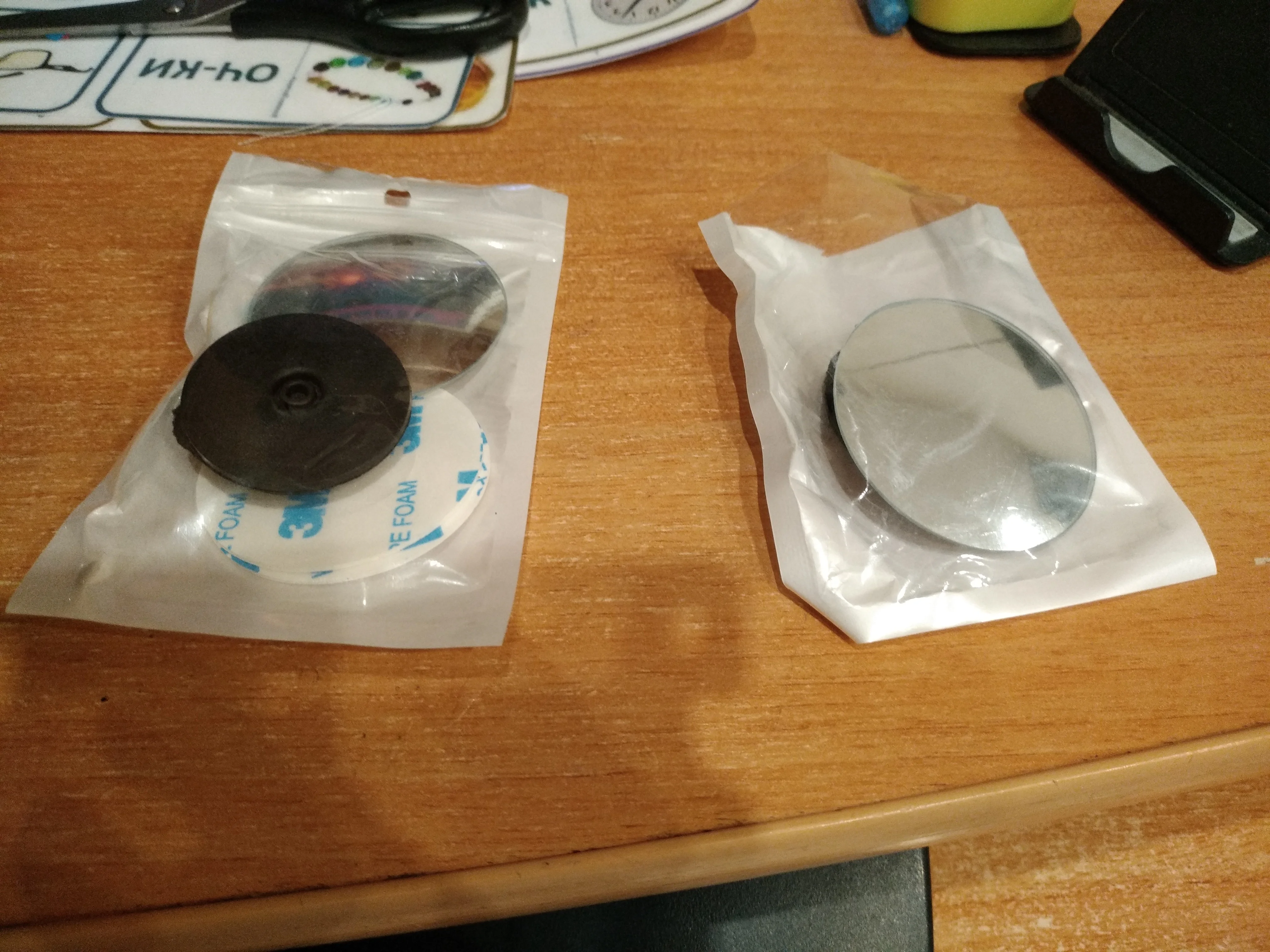 Пришли быстро, обзор хороший у этих зеркал. Клеятся на двухстороннюю ленту.