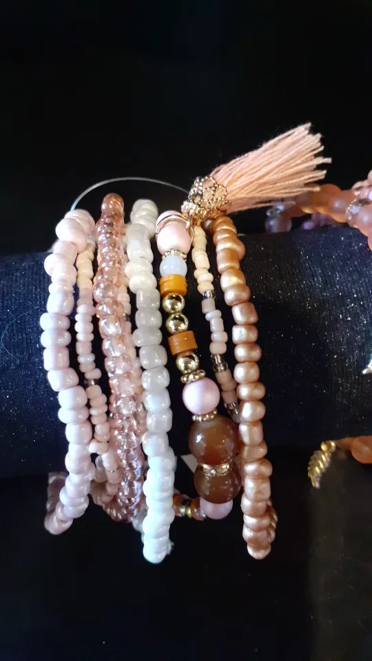 Богемное ювелирное изделие, многослойный эластичный плетеный комплект из браслетов и браслетов с бусинами для женщин, Шарм-браслет с кисточкой в виде листа