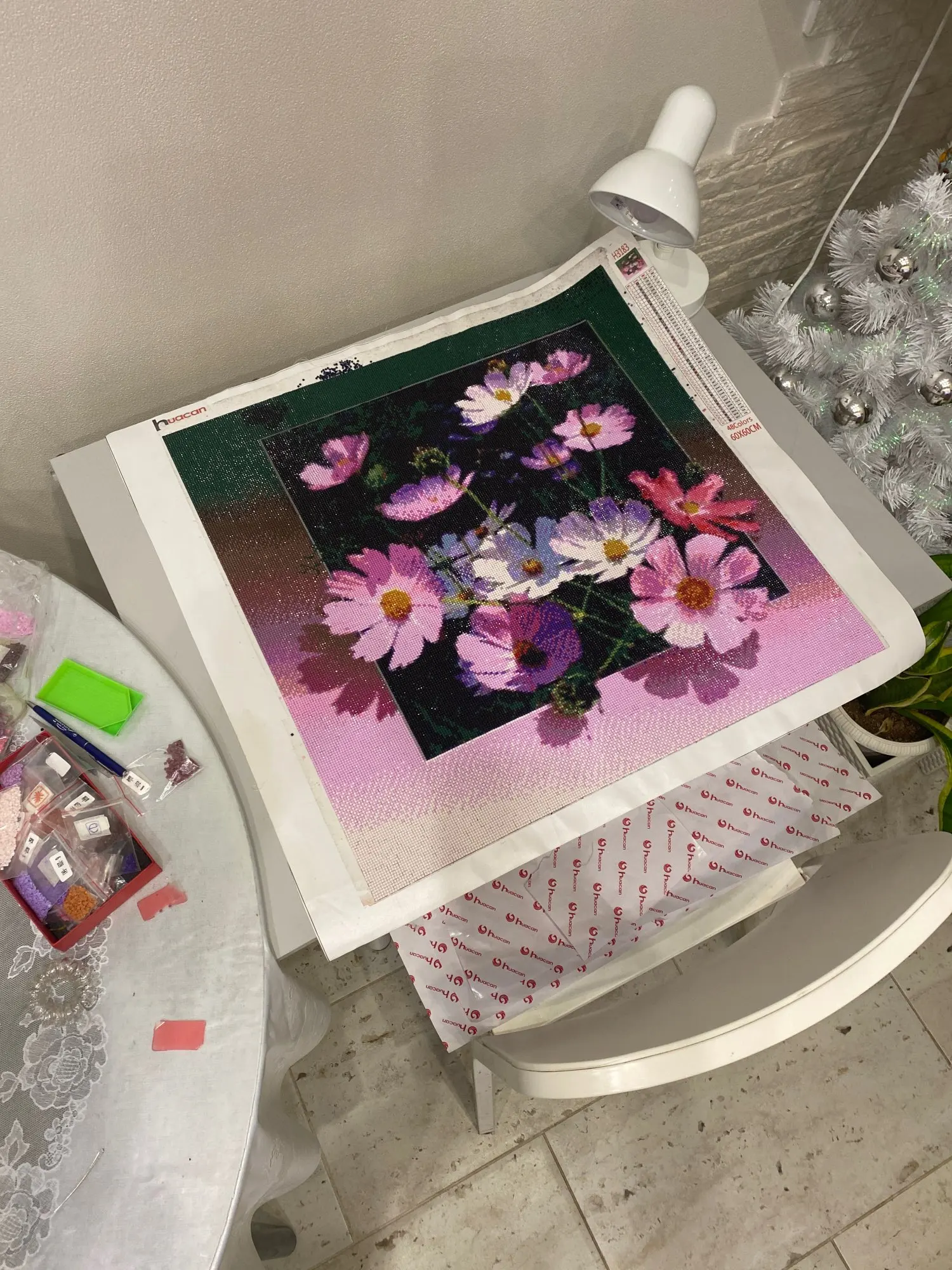Заказ получен быстро — через 2 недели в почтомате. Упаковка отличная, повреждений нет. Всё остальное выяснится в процессе выкладывания цветов. Хочу обратить внимание других заказчиков, что размер картинки вместе с клейкими полями даже чуть больше, чем заявлено. Прилагаю фото. Благодарю продавца и службу доставки за четкую работу и рекомендую к сотрудничеству!