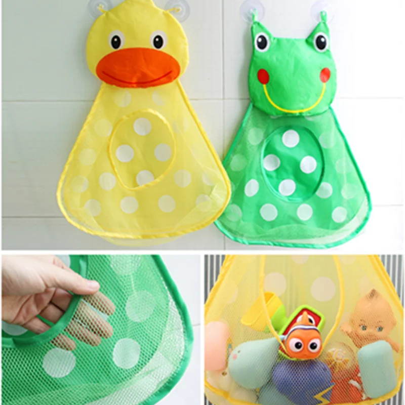 Детские игрушки для душа, Мультяшные Висячие сетчатые сумки с изображением утки, лягушки, детские игрушки для хранения, Крепкие присоски, органайзер для ванной комнаты