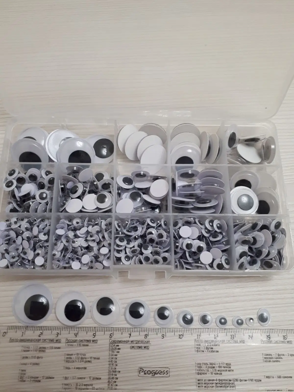 глаза супер. в коробочке, рассортированы по размерам.