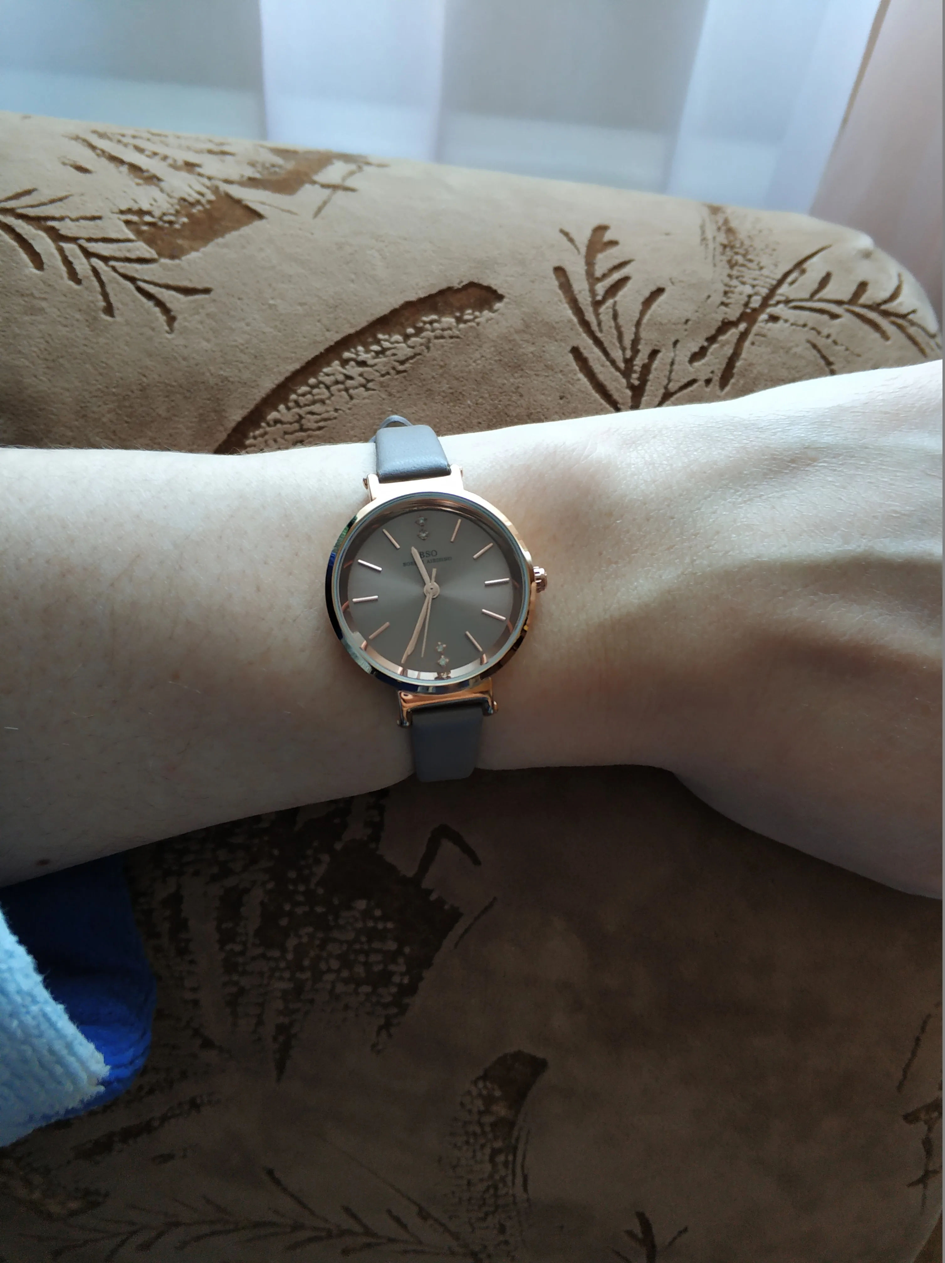 Часы смотрятся отлично, красивый цвет циферблата, среднего размера, подходят на тонкое запястье.