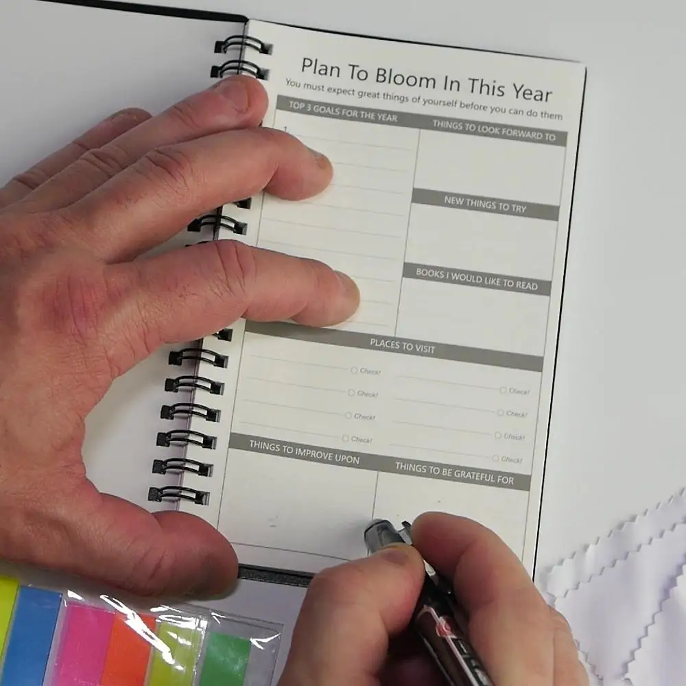 Записная книжка очень хорошая, я прибыла до маркировки, и у них есть некоторые пункты, которые мне понравились, как планировщик задач для вашего дня и задач фу ту рас, цвета очень яркие, и мне понравился пост-он приносит