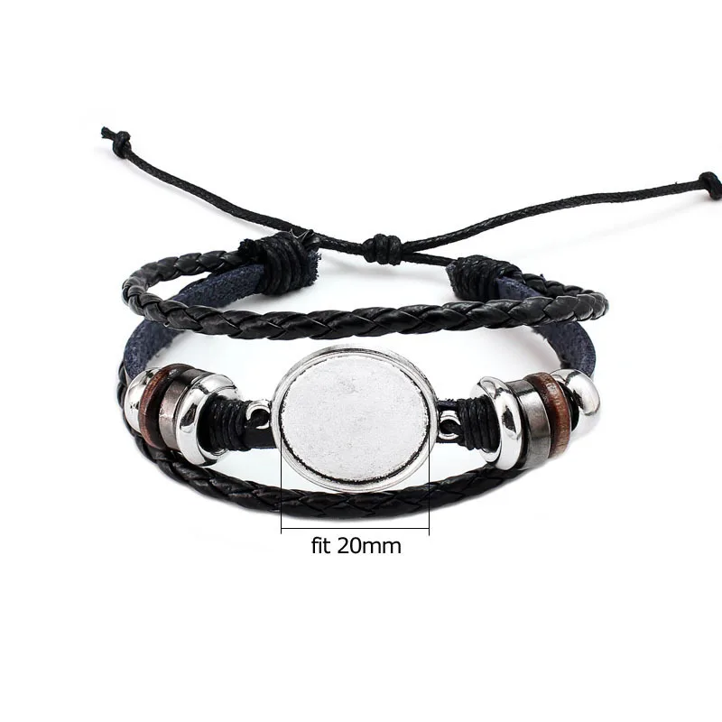 Имя:Кожаный Браслет-манжета под старину, пустое основание 20 мм, круглое фото, стеклянный кабошон, оправа, поднос для изготовления ювелирных изделий «сделай сам»
