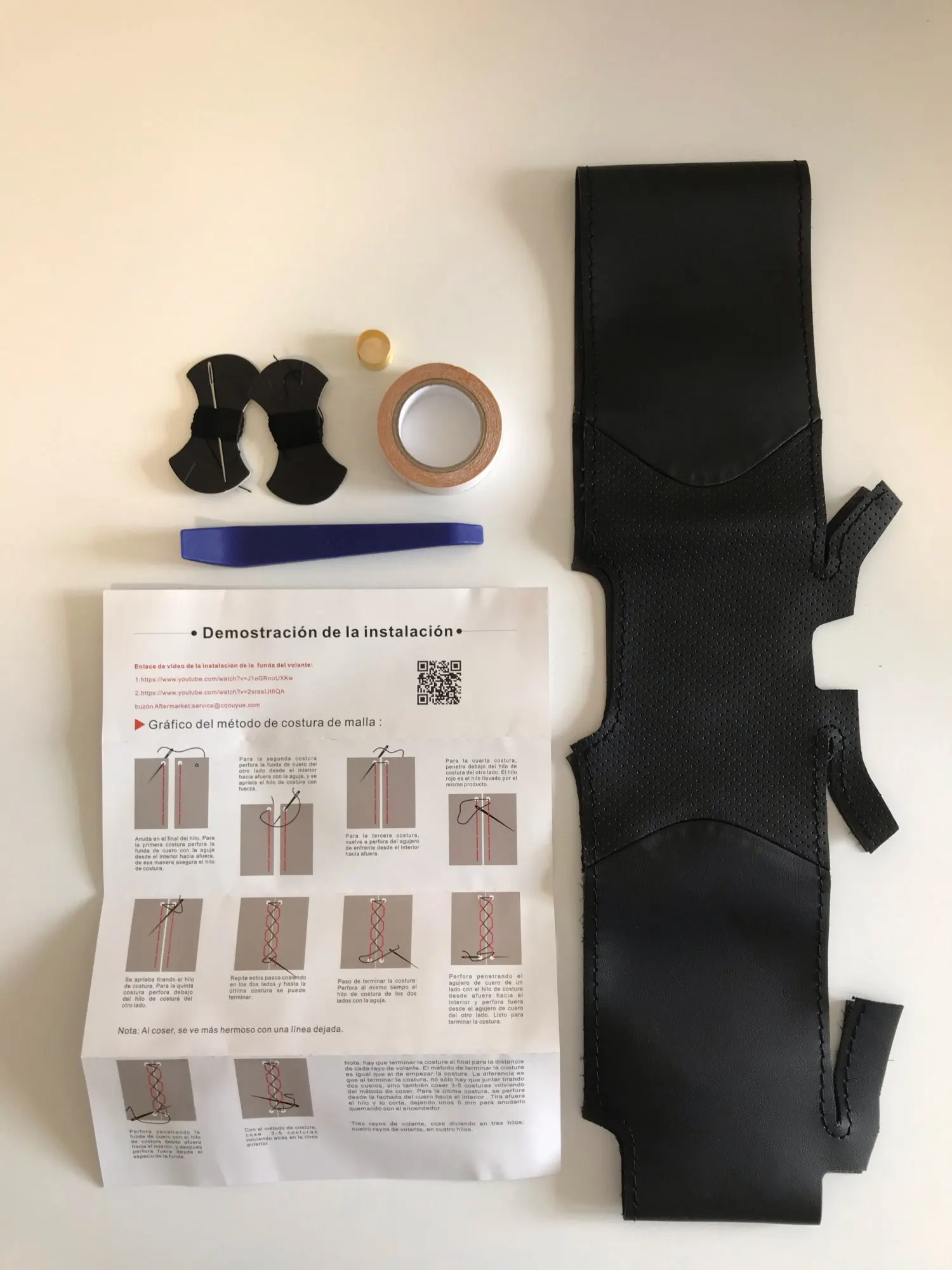 Все приехало быстро и четко , на ощупь очень приятный , сначала клеится на двухсторонний скотч потом прошивается . Необходимые инструменты в комплекте.