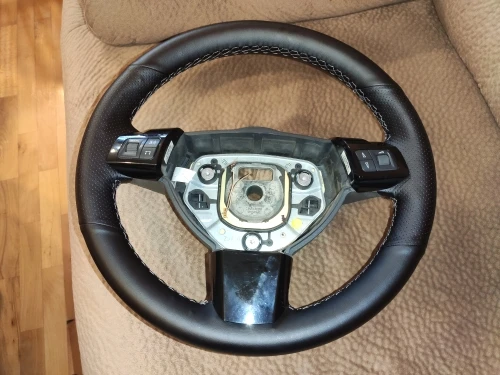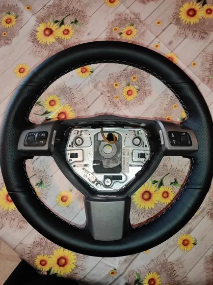 хороший, но лучше добавлять подложку (с завода идет с мягкой подкладкой под кожу) шить легко (страшно стягивать), но все получилось обклейка подлодкой и сама обряжка заняла часа 3 (руль снимали)