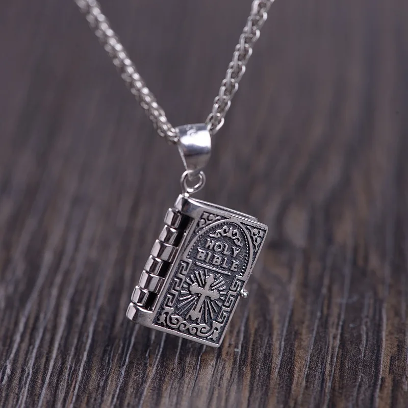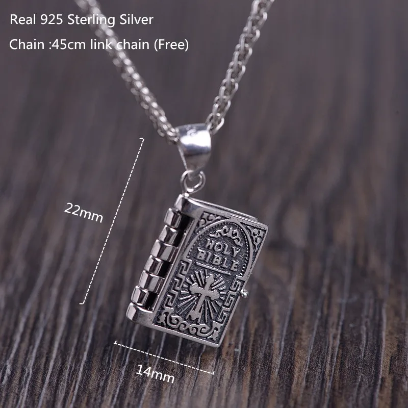 Женская подвеска из серебра 925 пробы с крестом из Библии, изысканно резная Библейская книга ожерелье, христианские украшения для женщин и девушек