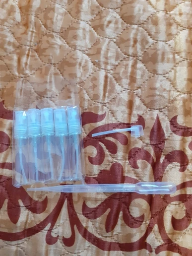 Флакончики очень хорошие. Сделаны из стекла. Продавец положил к набору пипетку на 3 мл. и запасной дозатор. Упаковано было надёжно. Замотано в пупырку и уложено в пакет с пупыркой. Не повредились. Беру второй раз у этого продавца. Первый раз брала на 2 мл. Думаю не последний. Посылка шла ровно месяц.