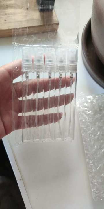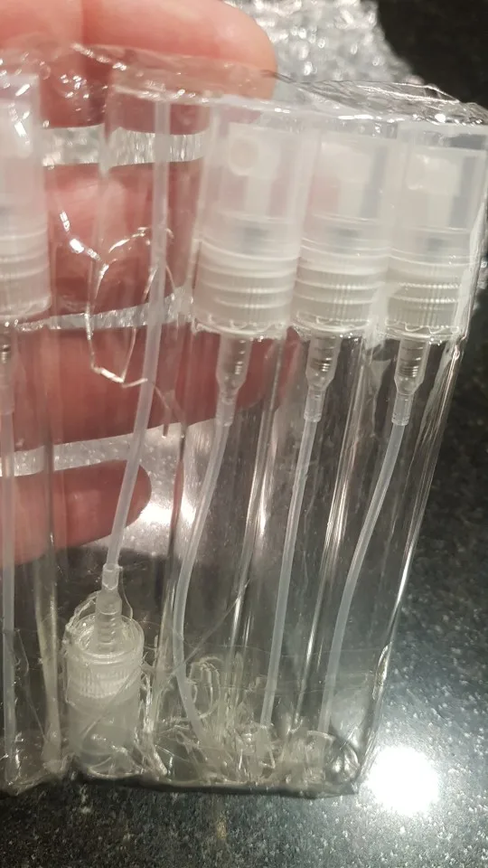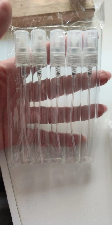 хорошие флаконы, стекло, не подтекст, спрей работает отлично. дошло за 3 недели. 3 посылки объединили в одну. На почте посылку видимо пинали, коробка была очень по мята. думала, что содержимое пострадало. но нет, все хорошо, флакончики в нескольких слоях пупырки.