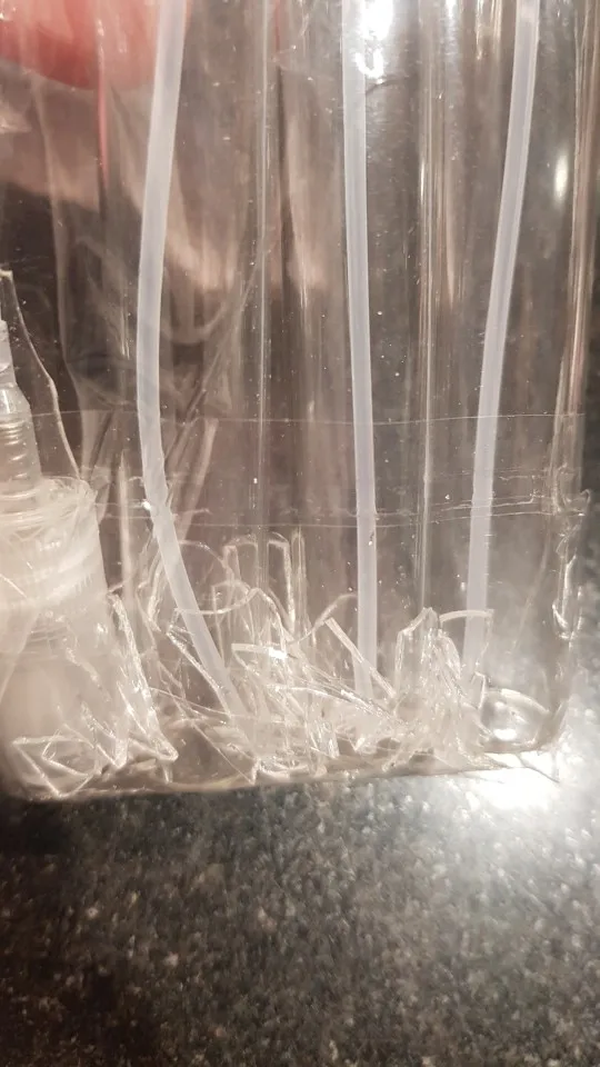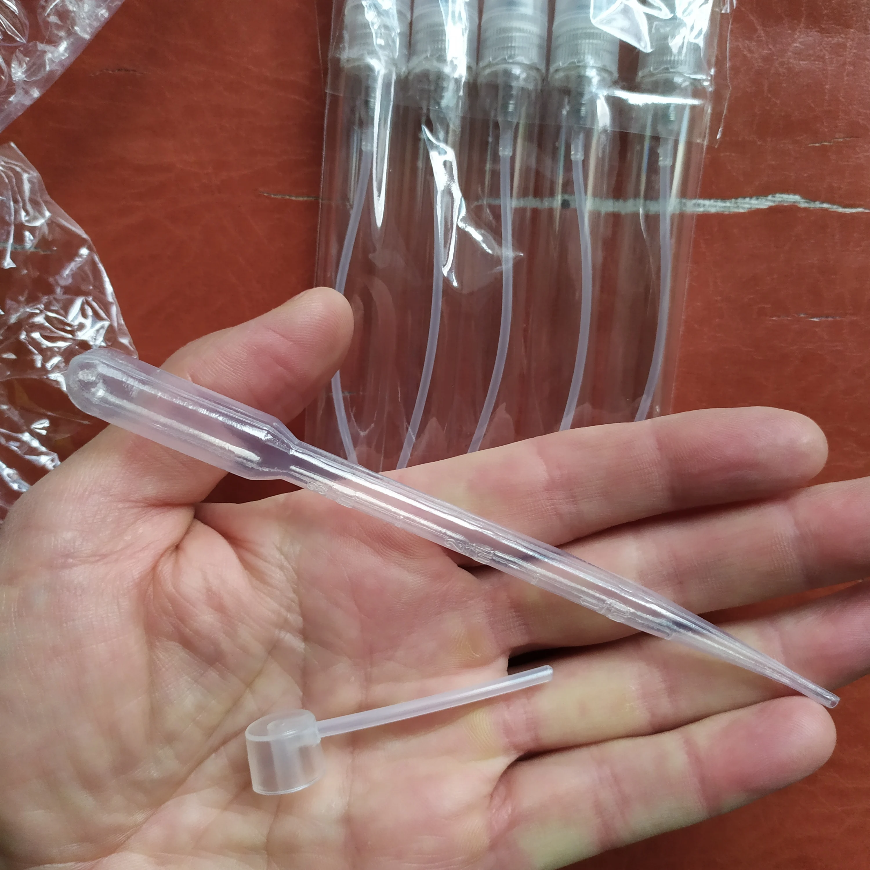 Стекло плюс пластик. Пока не использовала, не знаю будут ли протекать или парить, но по внешнему виду хорошие. Плюс длинная трубочка, которая достаёт до дна. В подарок положили пипетку и пульверизатор для отпрыскивания. Доставка была примерно 3 недели, забирала на почте.