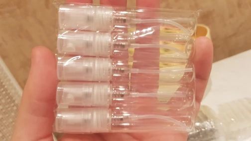 С включенными фитингами я могу очень легко поместить парфюм. У меня есть заказанные флаконы объемом 2 мл. Удобно для маленькой сумочки