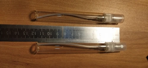 Нормальный стеклянные флакончики, с 2 дозаторами , один пипетка , другой приспособление для переливания из другого флакончика . Шло очень долго ,3 месяца до Сочи . Пришло не разбитое , все нормально . Покупал за 100 рублей , 5 пробирок . Нормальное качество , стекло . Распыляет нормально . Если необходимо быстро , не рекомендую . Если есть время ожидать - берите смело .