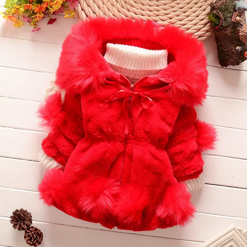 Детское пальто с искусственным мехом, зимнее длинное пальто из хлопка с большим меховым воротником для маленьких девочек, 2021