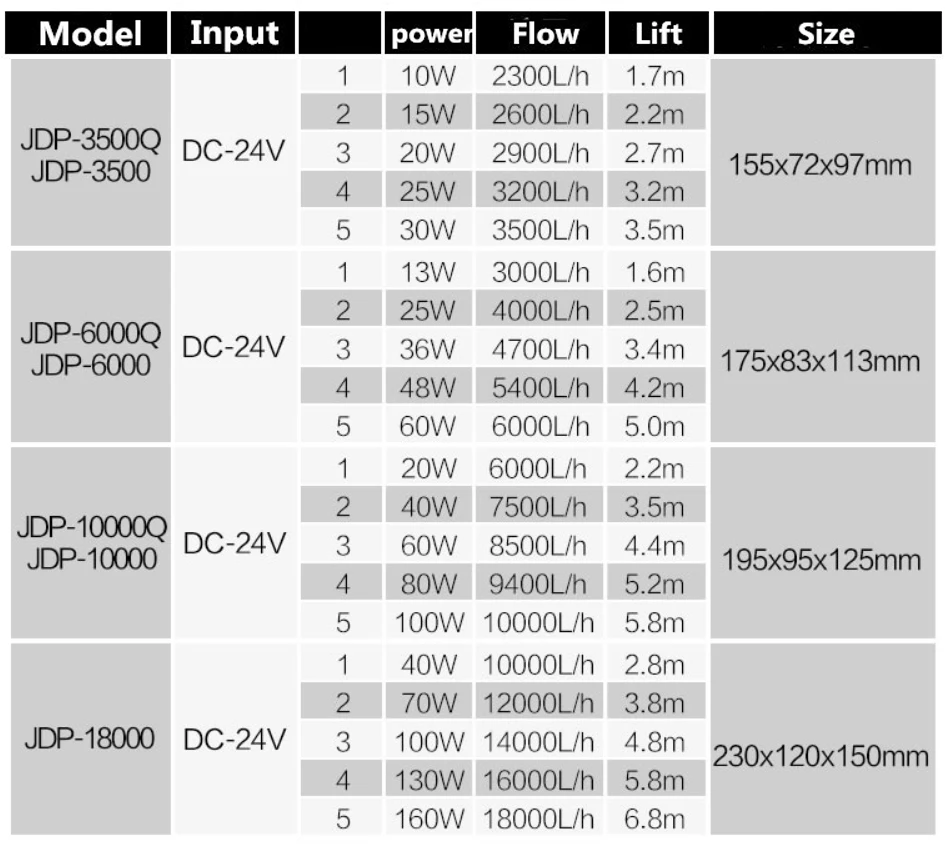 Многофункциональная интеллектуальная панель управления, регулируемый поток и мощность Очень тихий, как в пресной, так и в морской воде Погружной или внешний: подходит для использования в амфибии, может работать в морской и пресной воде Перед внешним использованием обязательно налейте воду в насос Умный контроллер: 99 Регулируемая скорость и 10 мин режим паузы питания; Функция памяти может держать ту же настройку после каждого перезапуска