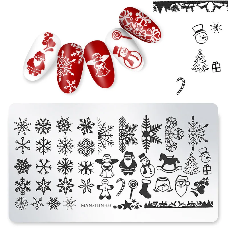 1 шт. прямоугольник рождество пластины для штамповки ногтей Снежинка Маникюр Шаблон фестиваль Новый год трафарет для ногтей