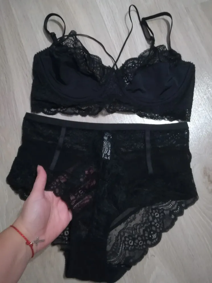 шикарный комплект, мягкое кружево, очень приятное к телу, смотрится очень сексуально. девочки, советую от души. доставка до МО 2 недели. размерная сетка точная.