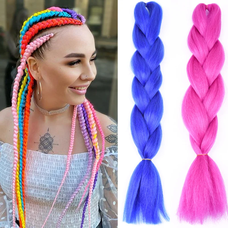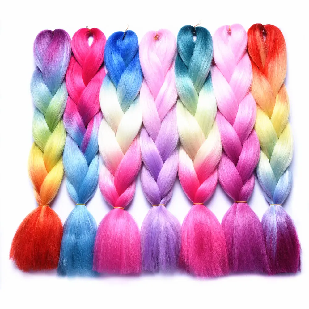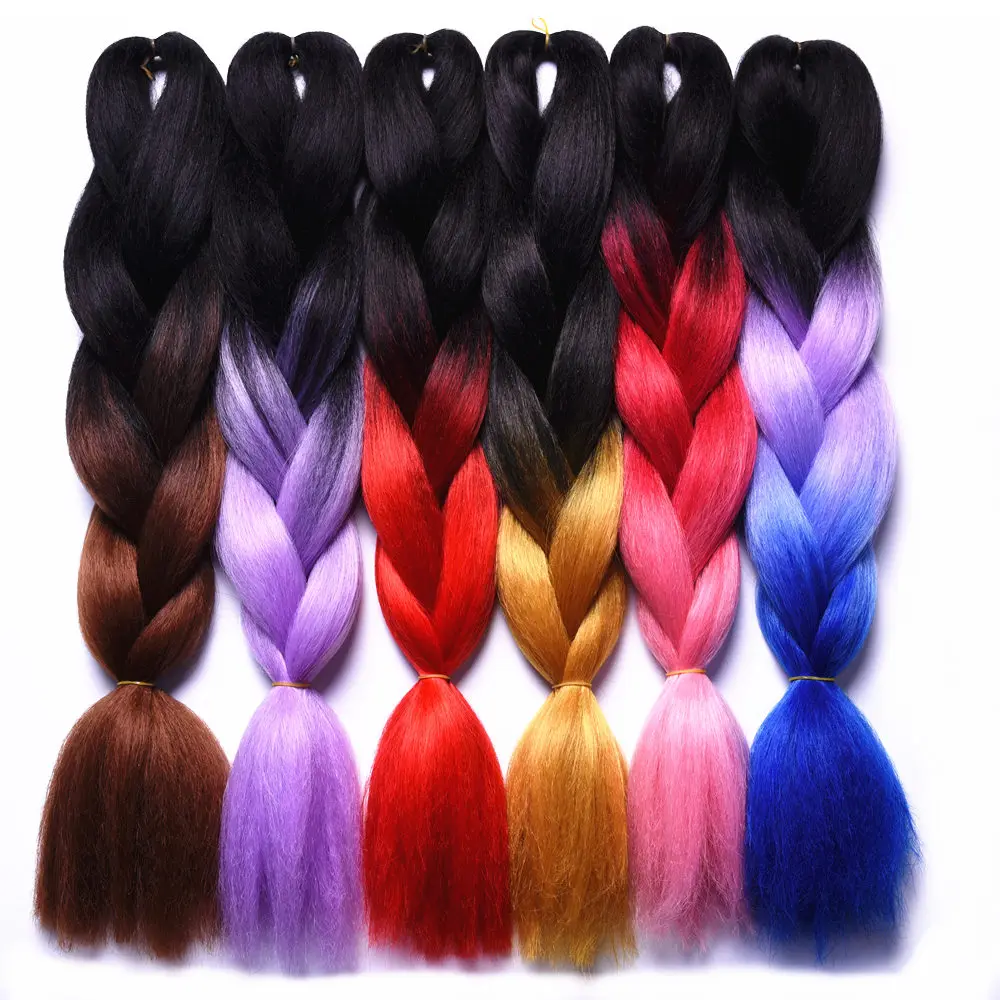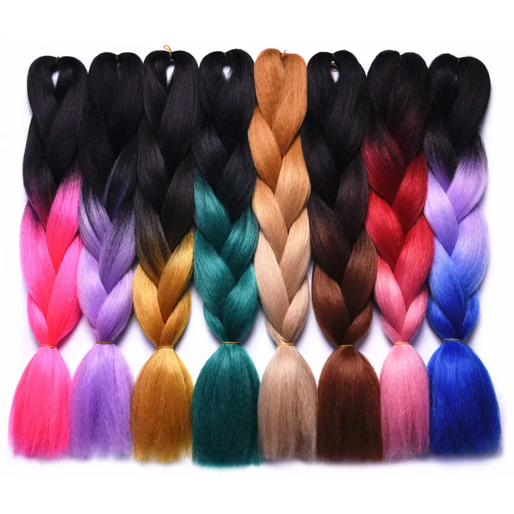 Синтетические волосы Омбре плетение волос пучки Джамбо косички полная звезда кроше блонд розовый синий фиолетовый Радуга Yaki искусственные волосы