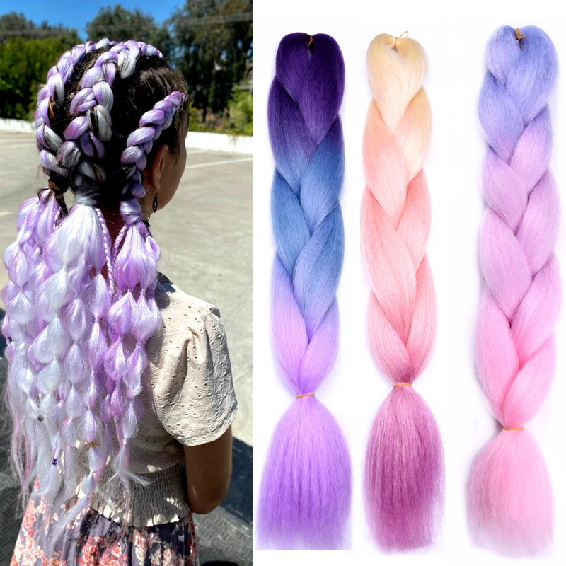 Предварительно растягивающиеся плетеные волосы 1 упаковка 24 "100 г джамбо коса каникалон фиолетовый Омбре синий розовый цвет синтетические косички волосы с полной звездой