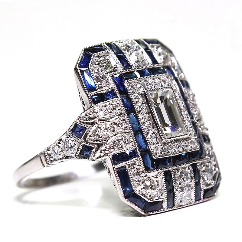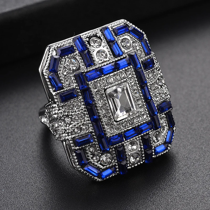 AMORUI роскошные кольца с синими кристаллами и кубическим цирконием для женщин Bijoux Anel Femme серебряное кольцо принцессы для любви ювелирное изделие подарок