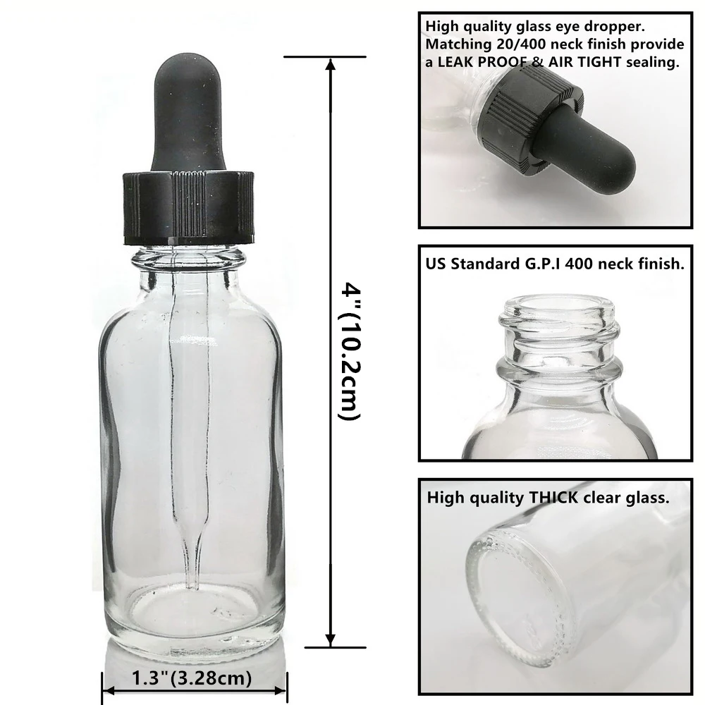 6 шт. 2 унций 60 мл прозрачных стеклянных капельниц, с стеклянным г...
