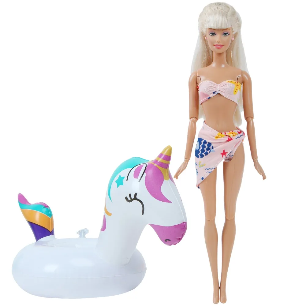 Купальник ручной работы в смешанном стиле, Летний Пляжный Купальник для вечеринки, забавное бикини + симпатичное кольцо для купания, Одежда для куклы Барби, аксессуары, игрушки