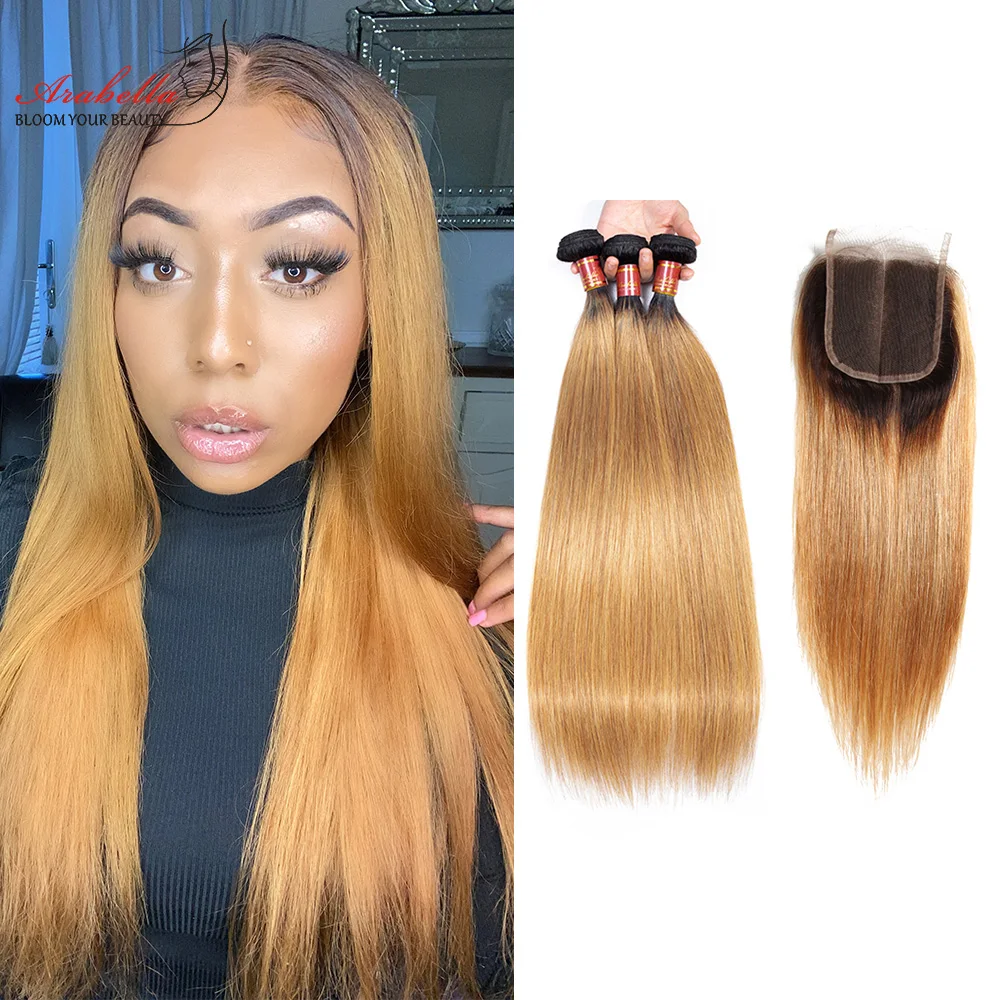 Бразильские прямые пучки волос с закрытием 1b27 Ombre Arabella Remy волосы для наращивания 100% человеческие пучки волос с закрытием