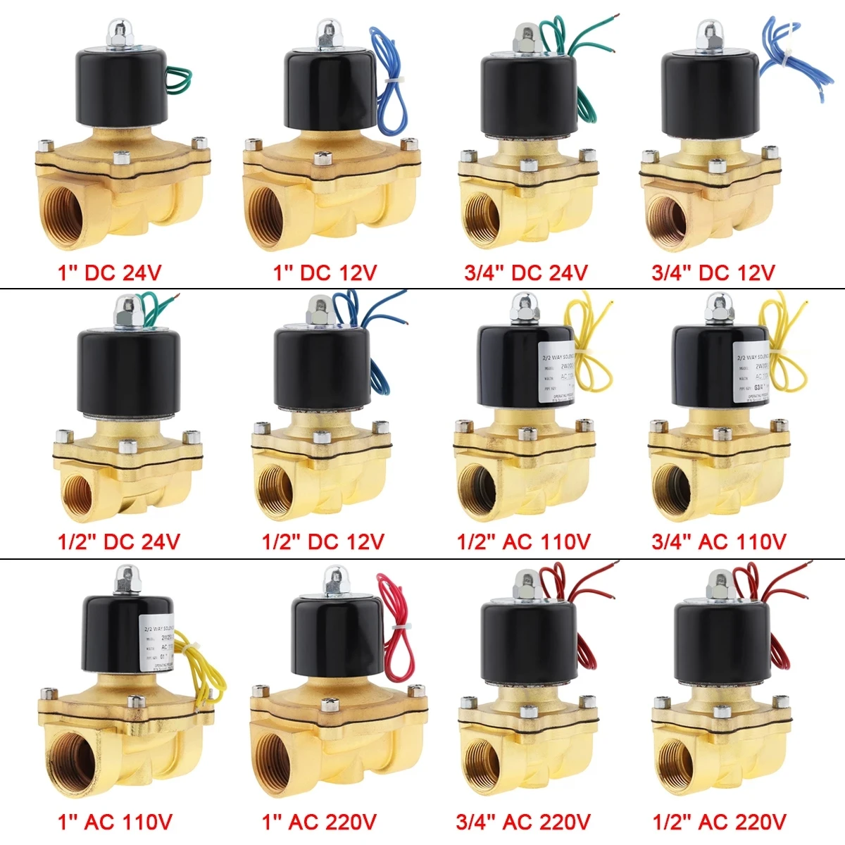 Электромагнитные клапаны, нормально закрытые пневматические клапаны 12 дюйма, 34 дюйма, 1 дюйм, для воды, масла, воздуха, 12 В, 24 В, 220 В, 110 В
