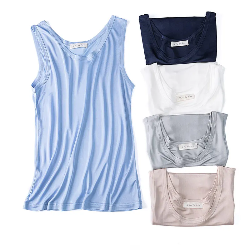 Мужская майка из 50% шелка, 50% вискоза, без рукавов, с круглым вырезом, футболки SG202
