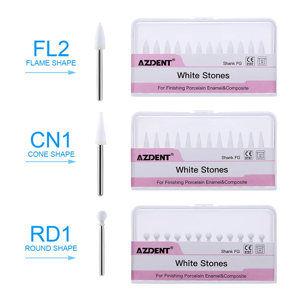 12 шт.корт. AZDENT Dental Flame белый камень полировка FG Burs FL2 точка истирания Бур подходит для высокоскоростного наконечника 1,6 мм стоматологические инструменты