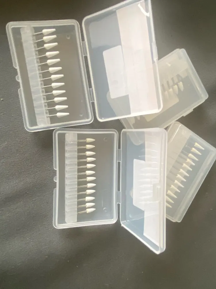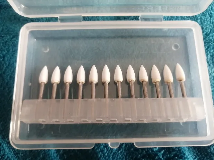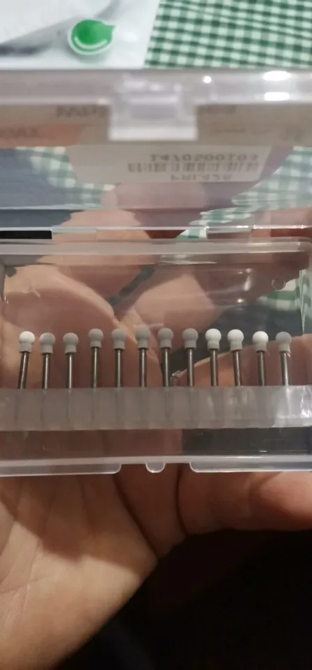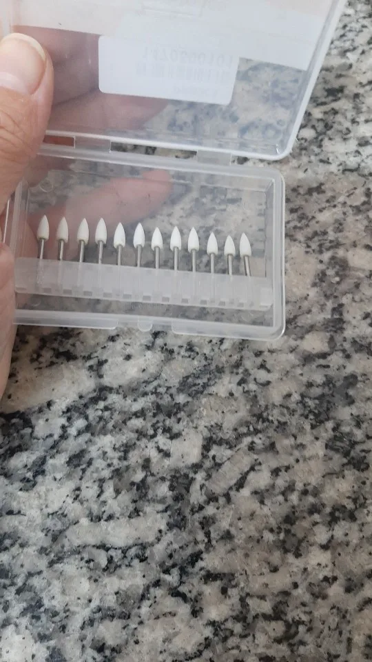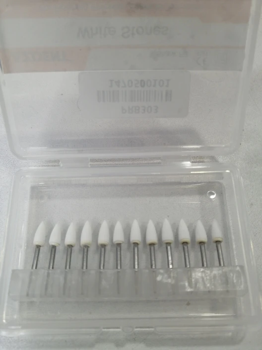 Качество полное говно, не рекомендую использовать это у кого то во рту. Боры большие сами по себе, кончики у них не одинаковые, сам Арканзас приклеены клеем на бор, наверняка не центрованы