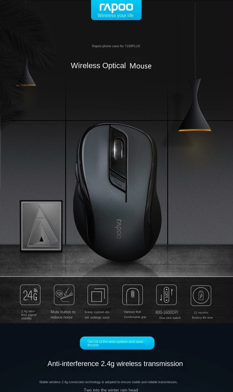 Беспроводная оптическая игровая мышь Rapoo 7100Plus с регулировкой DPI для настольного ноутбука, ПК